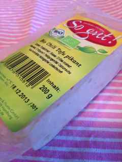 Chilitofu ist einfacher Tofu, versetzt mit Chili-Elementen. Es ist nicht wirklich scharf. Diesen Tofu würde ich nicht ungegart essen. Ich habe ihn bisher als Suppeneinlage verwendet. Sicher kann man ihn auch gut braten.